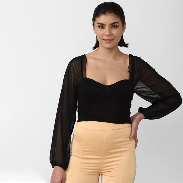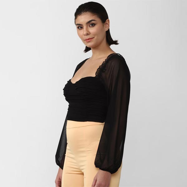 Black regular regular topSolid solidSweetheart neck, long, puff sleevesSmocked detailKnitted