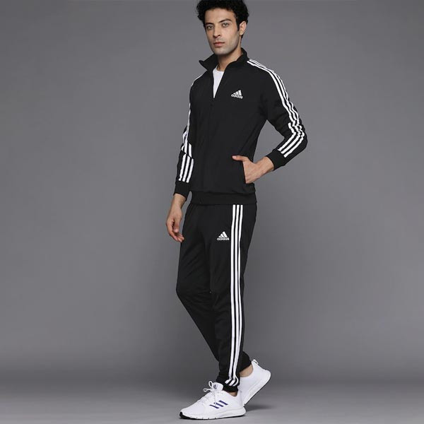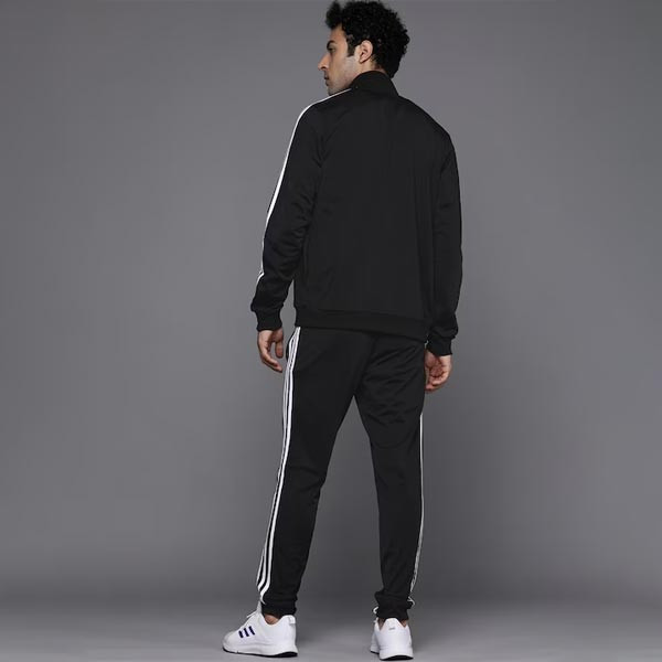 Black and white tracksuit Black and white striped front open jacket Has insert pockets Stand Collar Zip closure black and white striped joggers Inner drawstring closure two side zip pockets Size & Fit Size worn by the model: M Chest: 38" Waist: 31" Hips: 39" Height: 6'1'' Material & Care 100% Polyester Machine wash