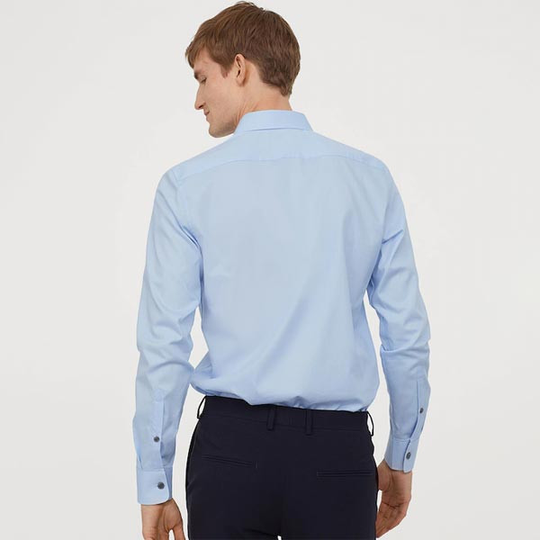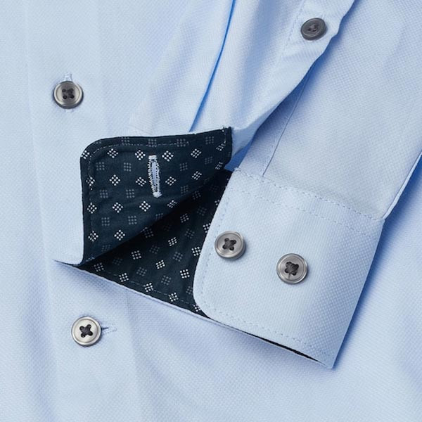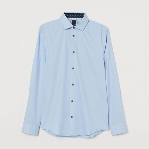 Shirt in premium cotton with a cutaway collar, French front and yoke at the back. Long sleeves with adjustable buttoning at the cuffs, and a rounded hem. Varying pattern on the inside of the cuffs and collar stand. Slim Fit a fit with narrow shoulders and a tapered waist for a fitted silhouette