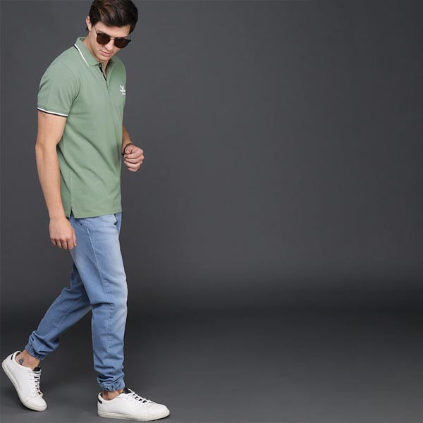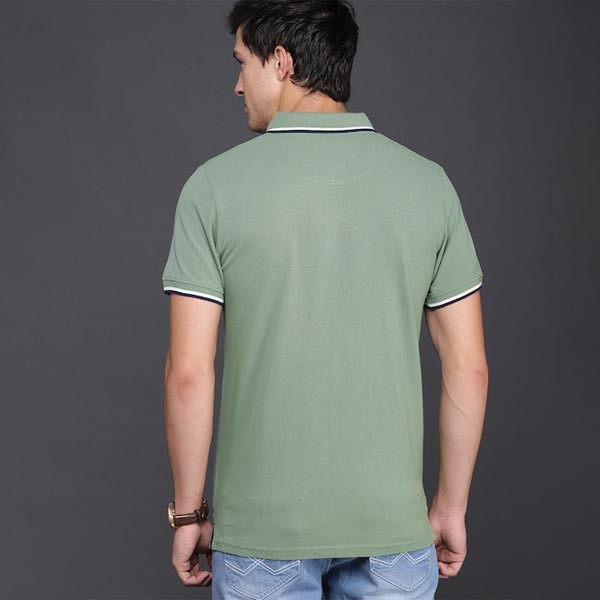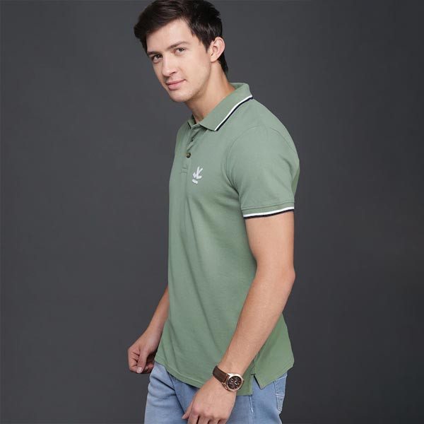 Green solid T-shirt, has a polo collar, short sleeves