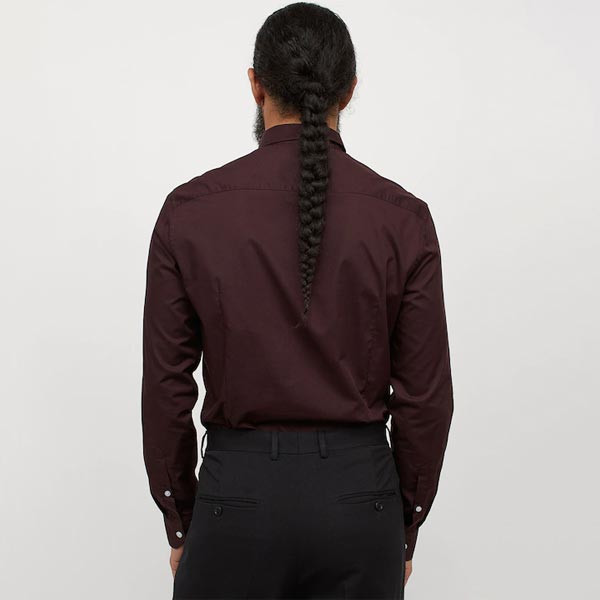 Shirt in woven fabric with an easy-iron finish. Turn-down collar, classic front and darts and darts and a yoke at the back. Long sleeves with adjustable buttoning at the cuffs and a sleeve placket with a link button. Gently rounded hem. Slim Fit a fit with narrow shoulders and a tapered waist for a fitted silhouette.