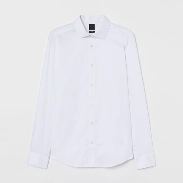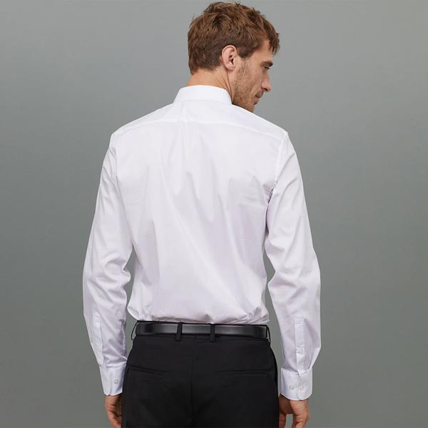 Shirt in a stretch weave made from a cotton blend with a collar and classic front. Long sleeves with adjustable buttoning at the cuffs, and a gently rounded hem. Slim Fit a fit with narrow shoulders and a tapered waist for a fitted silhouette Material & Care 78% Cotton, 19% Polyamide, 3% Elastane Machine-wash