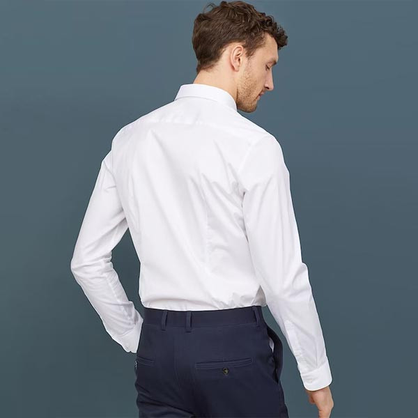 Shirt in a stretch premium cotton blend with a narrow turn-down collar, French front and long sleeves with adjustable buttoning at the cuffs. Shaping seams at the back and a rounded hem. Slim fit with narrow shoulders and a tapered waist to create a fitted silhouette. Size & Fit Regular fit The model (height 6') is wearing size 40 Material & Care 25% Polyamide, 3% Elastane, 72% Cotton Machine wash