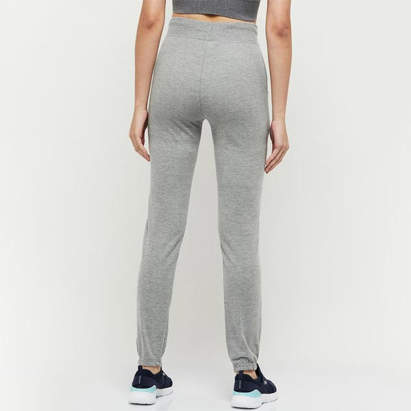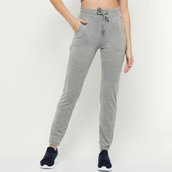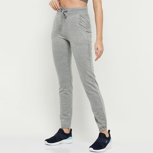 Grey Melange solid joggers, has an elasticated waistband with drawstring closure and two pockets
