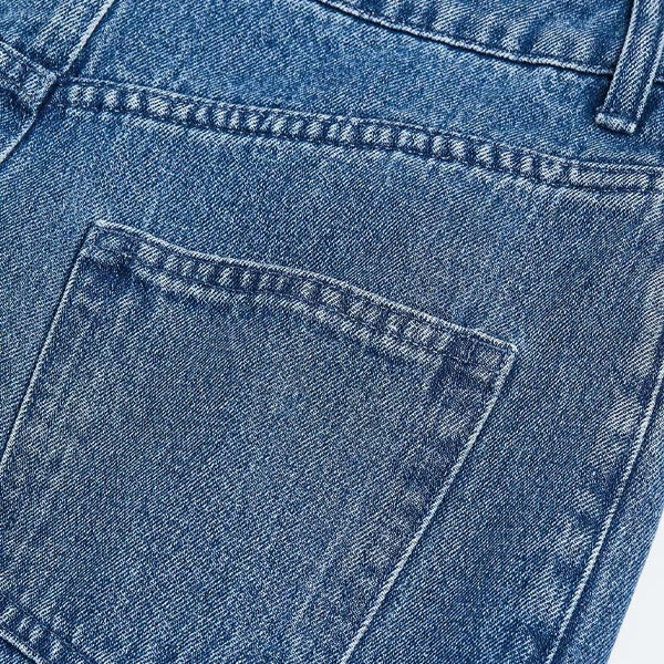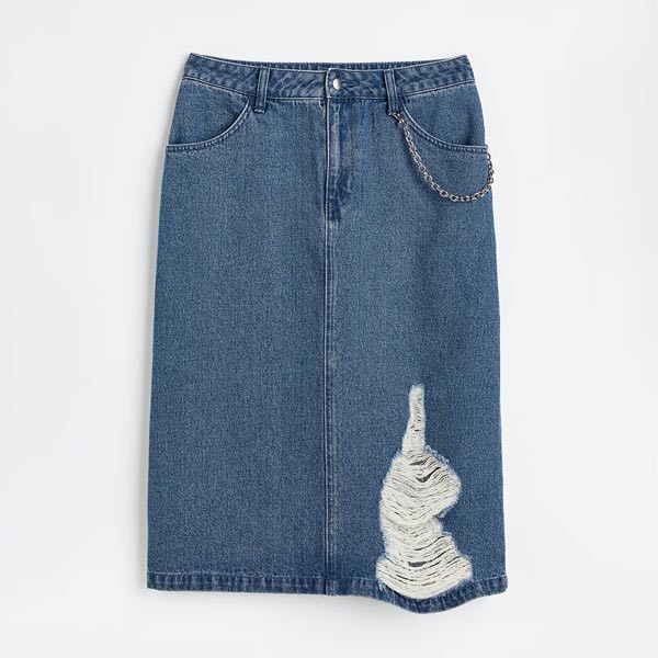 Knee-length skirt in sturdy cotton denim with hard-worn details and a detachable metal pocket chain. High waist with a zip fly and button, front and back pockets and a straight-cut hem.