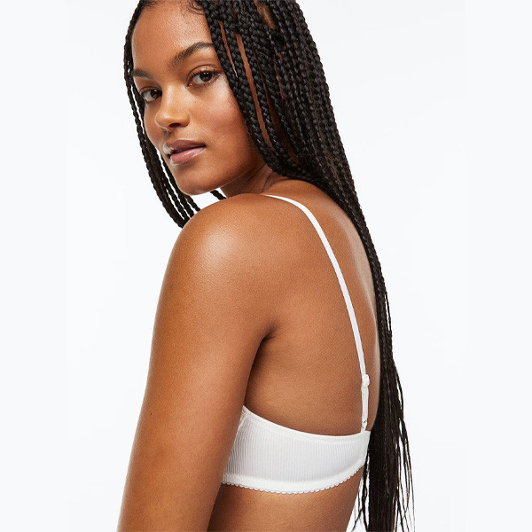 Push-up bra in lace with adjustable shoulder straps and underwired, padded cups for a larger bust and fuller cleavage. Hook-and-eye fastening at the back.