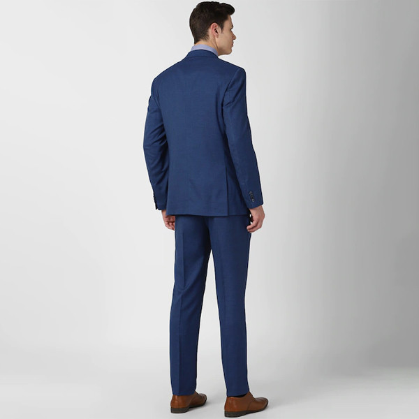 Blue self design single breasted slim-fit blazer, has notched lapel collar, long sleeves, a full button placket, two flap pockets, one welt pocket and an attached lining