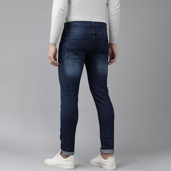Dark shade, light fade blue jeans Slim fit, low-rise Brand Fit: Tapered Vapour Clean look Stretchable 5 pocket Length: regular Size & Fit Brand Fit: Tapered Vapour Fit: Slim Fit Stretchable The model (height 6') is wearing a size 32 Material & Care 79% Cotton, 20% Polyester & 1% Elastane Machine Wash