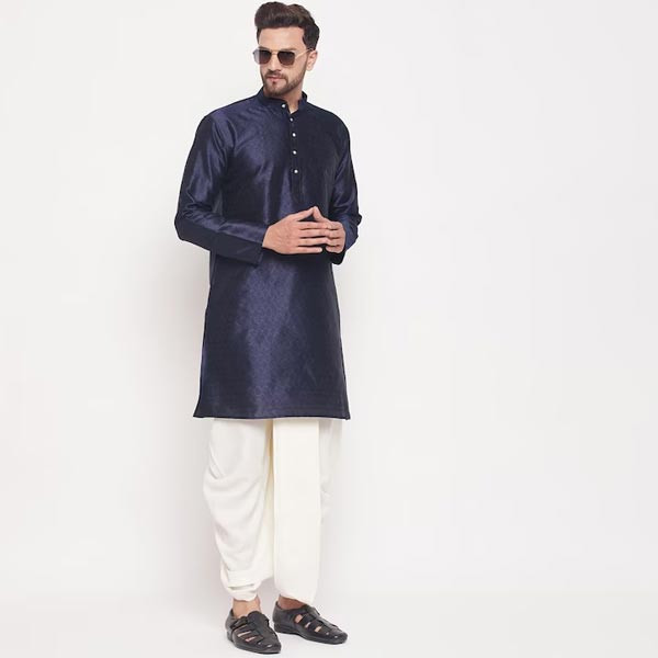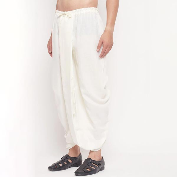 Cream-coloured solid mid-rise dhoti with pleats, has a waistband with a drawstring fastening Size & Fit The model (height 6') is wearing S Material & Care Cotton Blend Dry Clean preferably or cold light wash