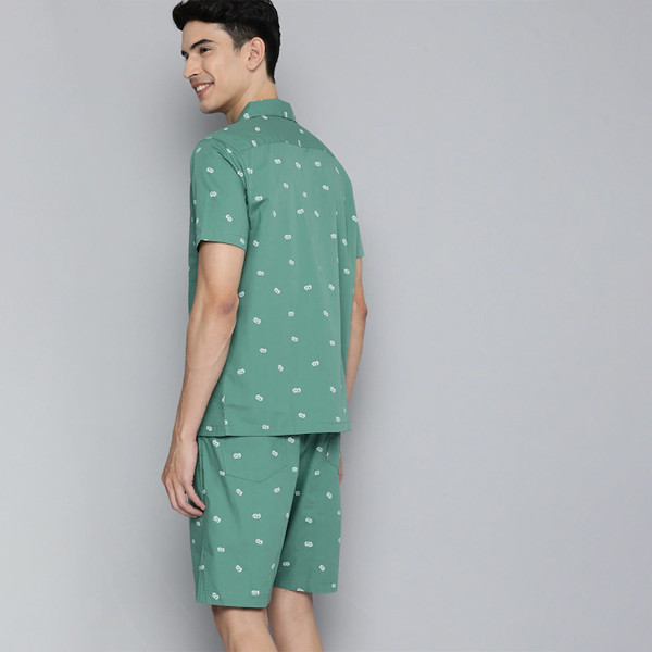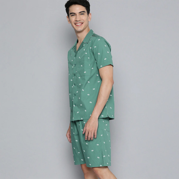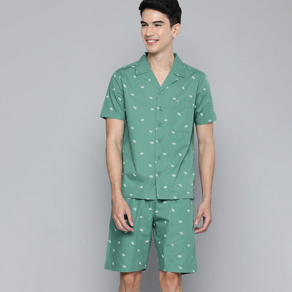 Regular Fit Size worn by the model: M Chest: 39" Waist: 30" Hips: 37" Height: 6' Material & Care Top fabric: Pure Cotton Bottom fabric: Pure Cotton Machine wash