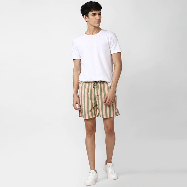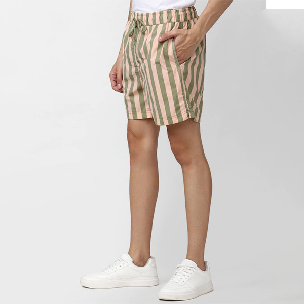 Green and peach-coloured striped pair of swim bottoms, elasticated waistband with drawstring closure Size & Fit The model (height 6') is wearing a size XS Material & Care Nylon Machine wash