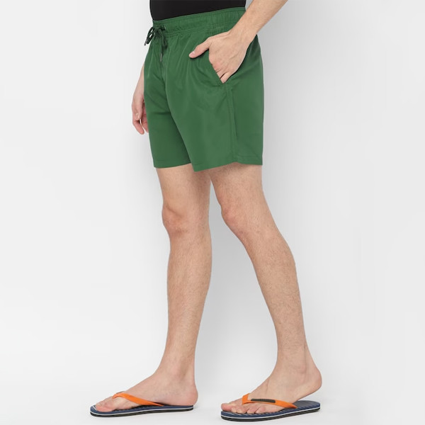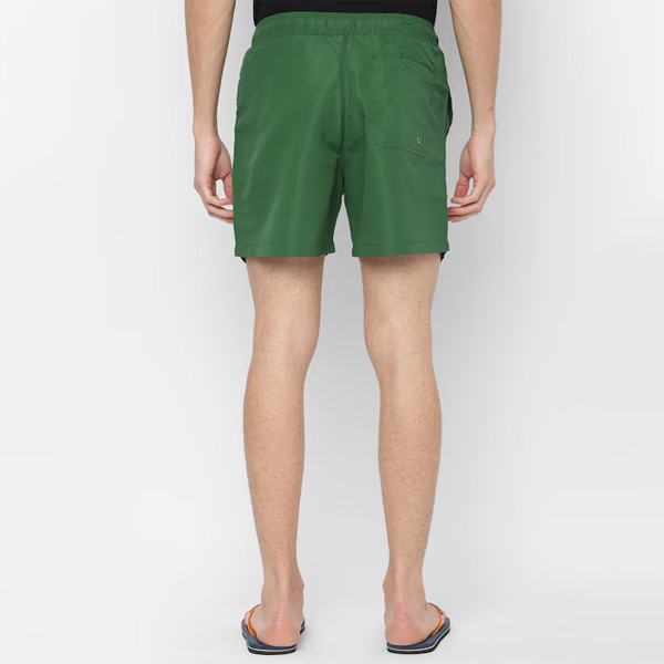 Green solid swim shorts, has an elasticated waistband with drawstring closure and 2 pockets Size & Fit The model (height 6') is wearing a size XL Material & Care 100% polyester Machine-wash