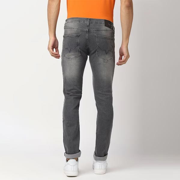 Medium shade, light fade grey jeans Slim fit, mid-rise Brand Fit: Vapour Clean look Stretchable 5 pocket Length: regular Size & Fit Brand Fit: Vapour Fit: Slim Fit Stretchable The model (height 6') is wearing a size 32 Material & Care 98% Cotton & 2% Elastane Machine Wash