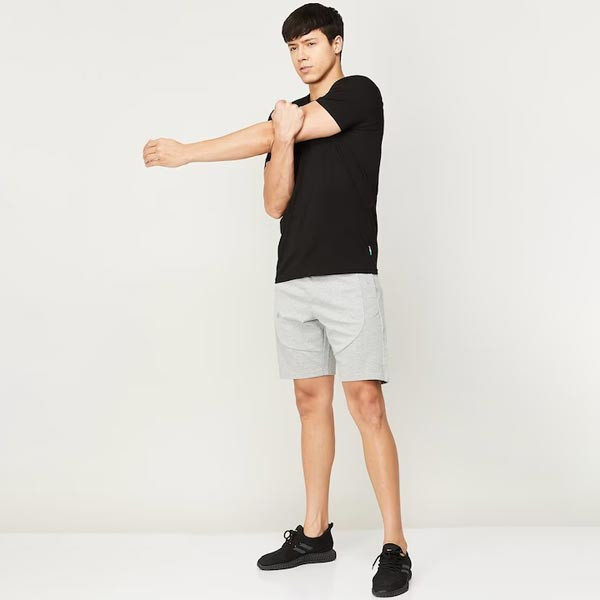 Solid mid-rise regular shorts, has 2 pockets, drawstring closure Size & Fit Regular Fit The model (height 6') is wearing a size 32 Material & Care Polyester Machine Wash