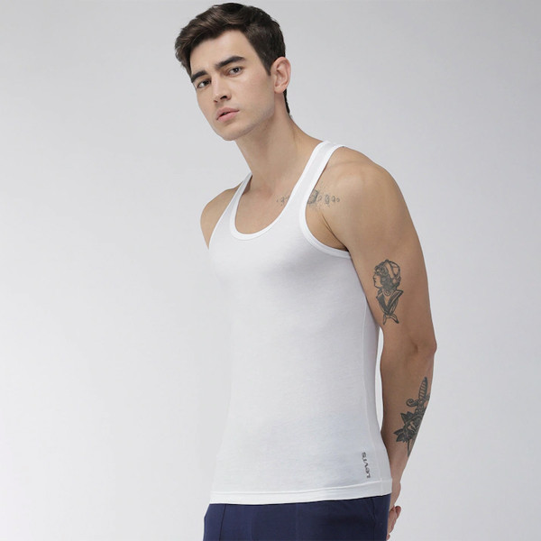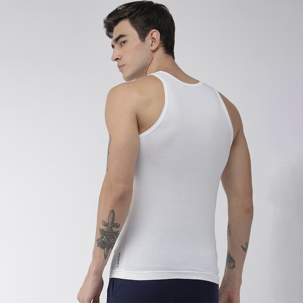 Pack of 2 White solid innerwear vests Each has a scoop neck, sleeveless, engineered with Coolin DNA Technology, anti-microbial protection & smart skin technology. Size & Fit The model (height 6') is wearing a size M Material & Care 100% cotton Machine Wash