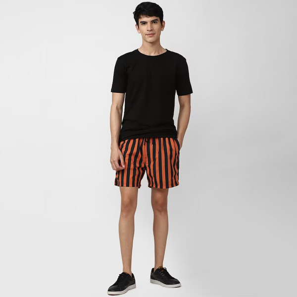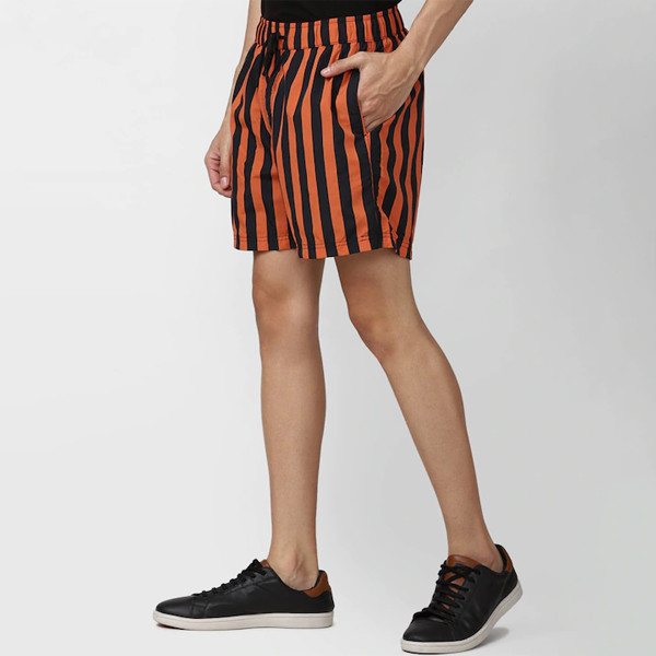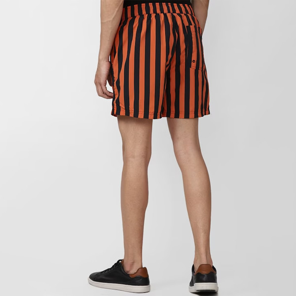 Rust orange and black striped swim bottoms, has an elasticated waistband with drawstring closure Size & Fit The model (height 6') is wearing a size XS Material & Care Nylon Machine Wash
