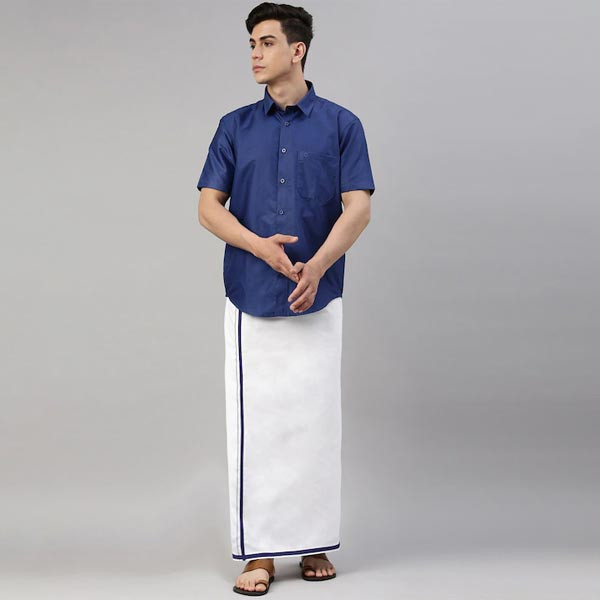White solid dhoti with brown border Material & Care Cotton Gentle machine-wash