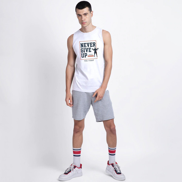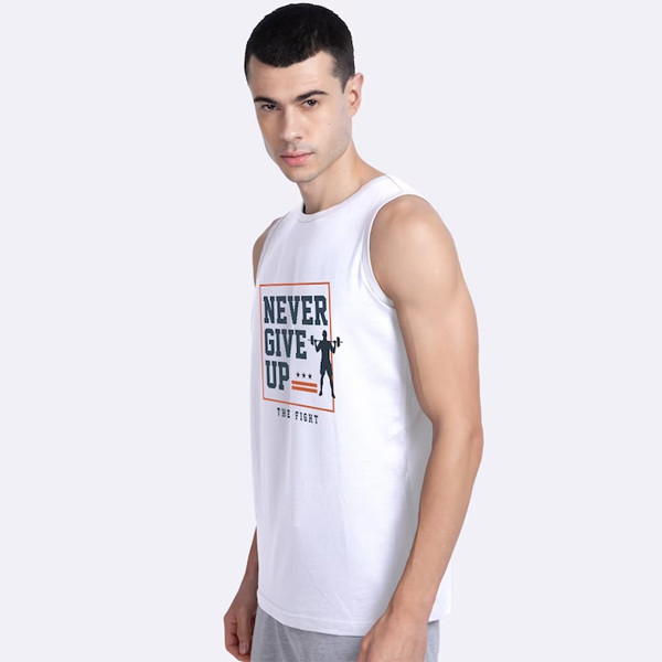 VAN - 274787-White 01 White, grey and brown printed innerwear vest, has a round neck, sleeveless Size & Fit The model (height 6') is wearing a size M Material & Care Cotton Machine wash
