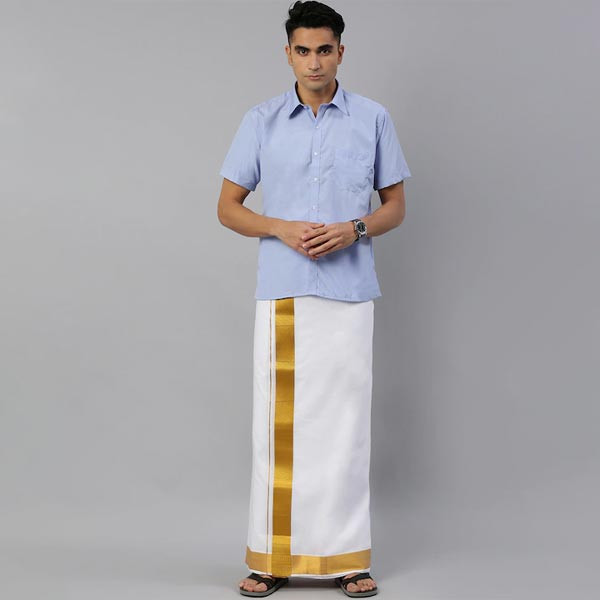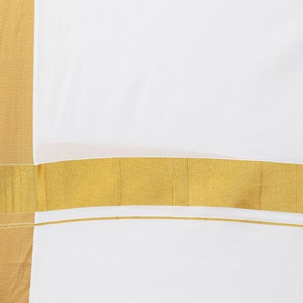 White solid mid-rise dhoti, has zari border Size & Fit Width : 1.27 Meters Length : 4.00 Meters The model (height 6') is wearing a M Material & Care 100% Cotton Hand-wash