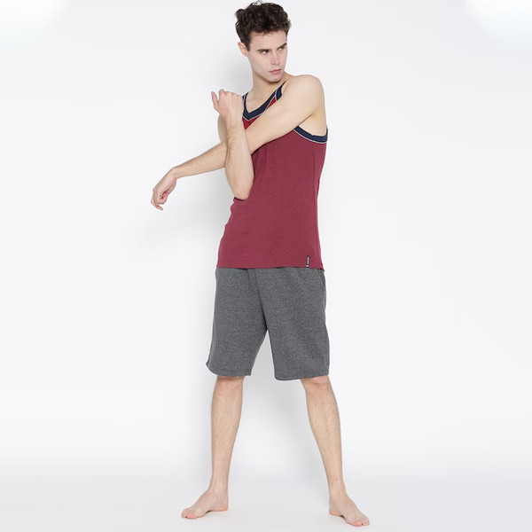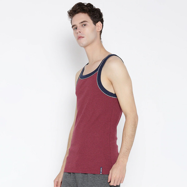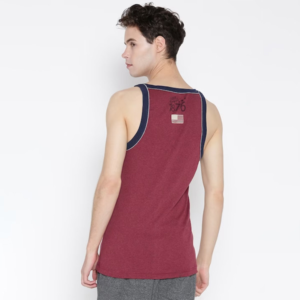 Red innerwear vest with melange effect, has a stylised scoop neck, sleeveless and applique detail on the back Size & Fit The model (height 6') is wearing a size M Material & Care 100% cotton Machine-wash warm