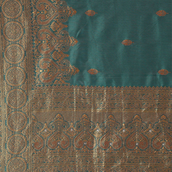 Teal and Gold-Toned woven design dupatta, taping border