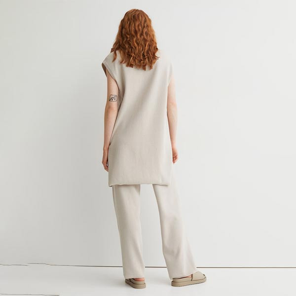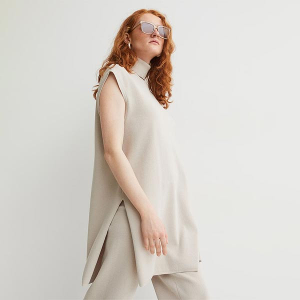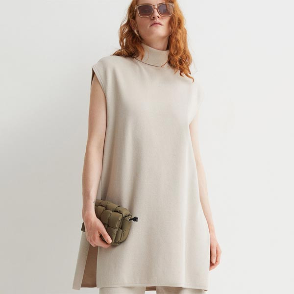 Sleeveless tunic in a soft, fine knit with a polo neck and slits in the sides of the hem.