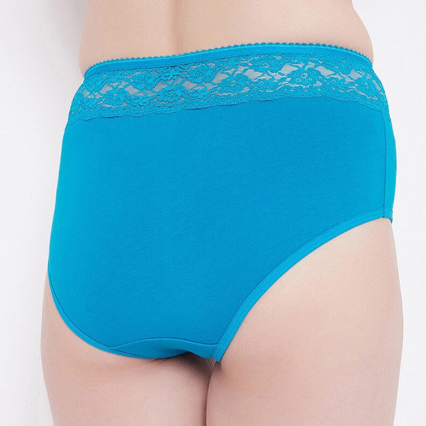 Blue solid high-rise hipster briefs with lace waist, has an outer elasticated waistband and a double-layered gusset