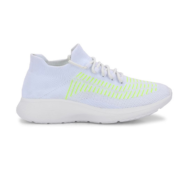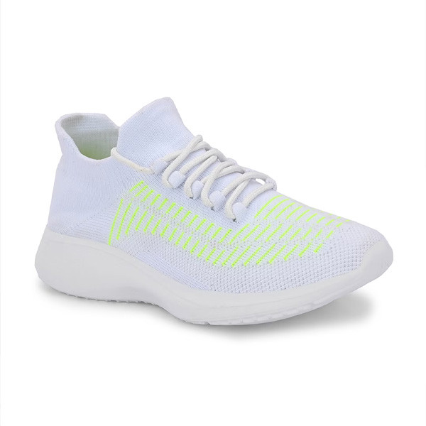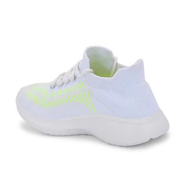 A pair of white & green running shoes, has regular styling, lace-ups detail