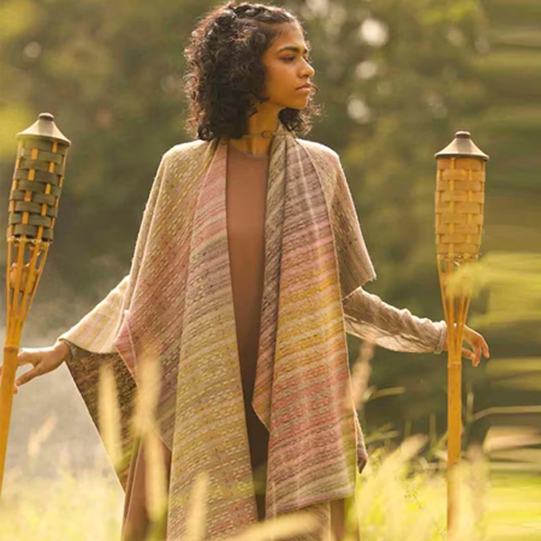 Printed open front longline shrug ,has sleeveless, asymmetric hem